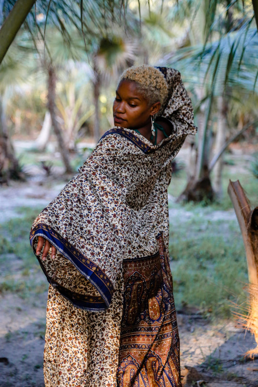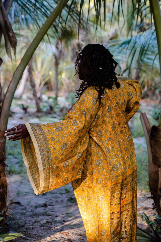 Silk saree hand-crafted kimono robes. One size fits ALL. Designed for flow and grace.