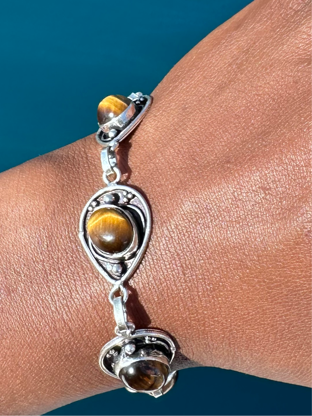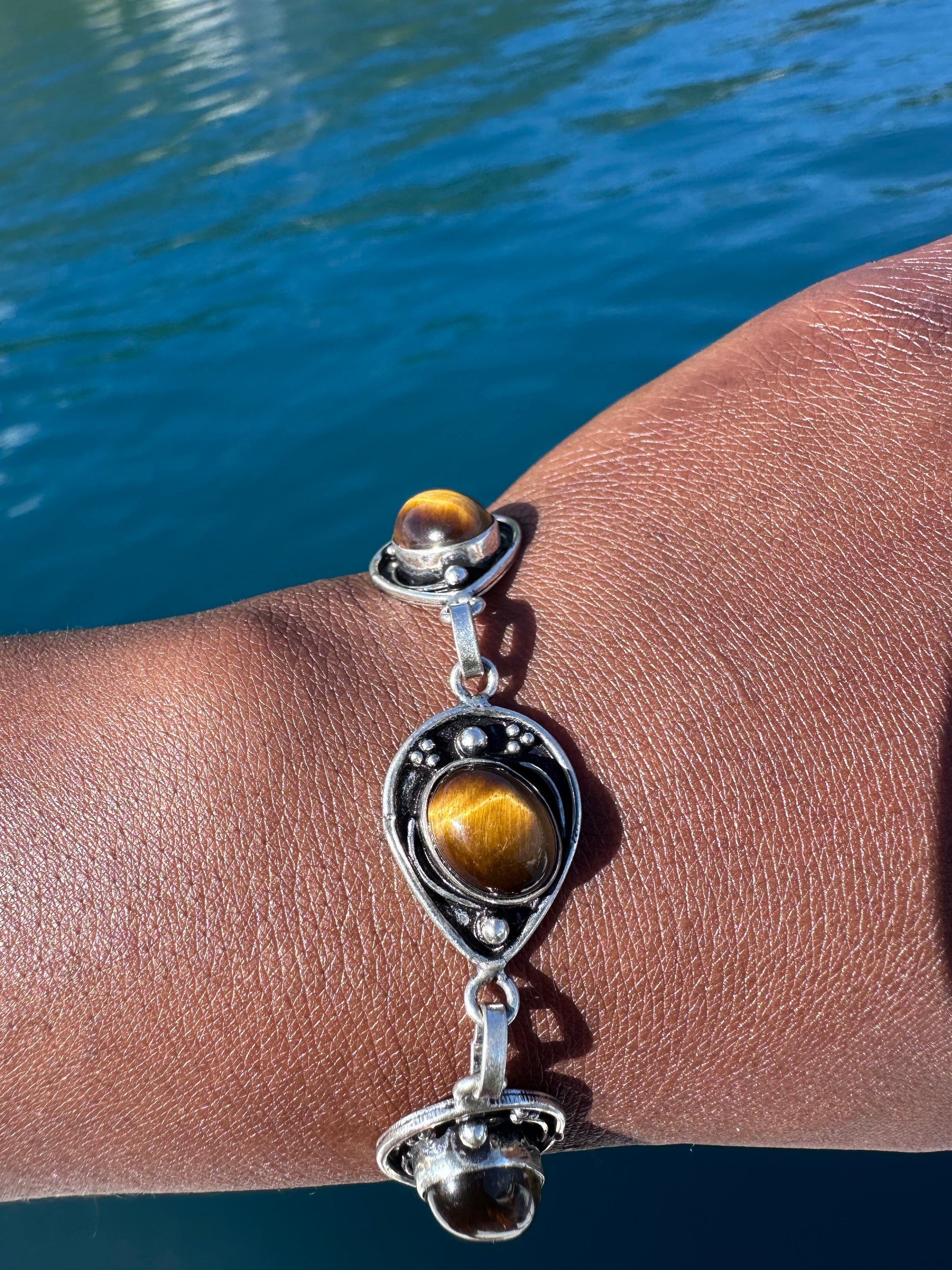 Beautiful vintage sterling silver Tigers Eye linked bracelet.