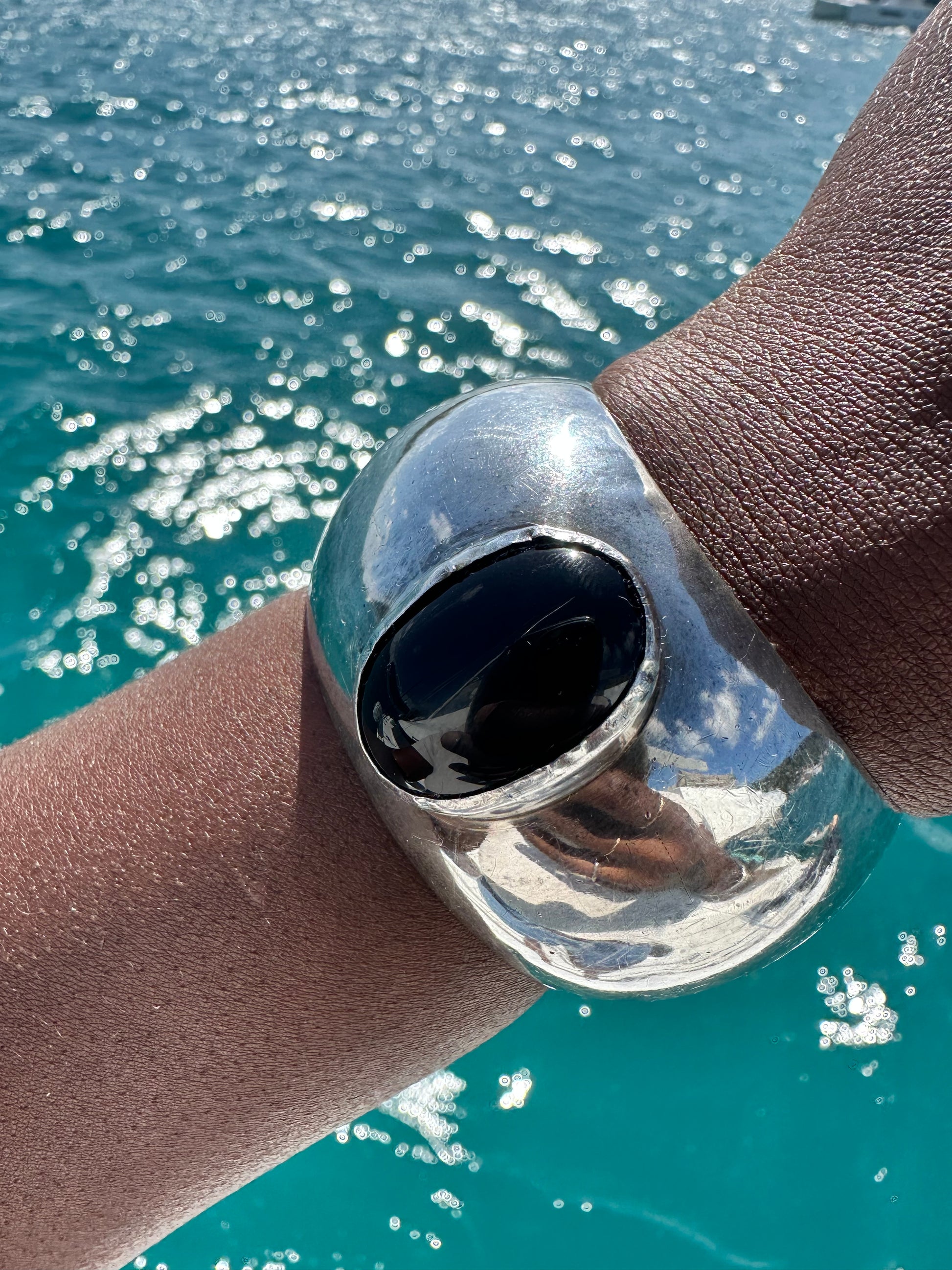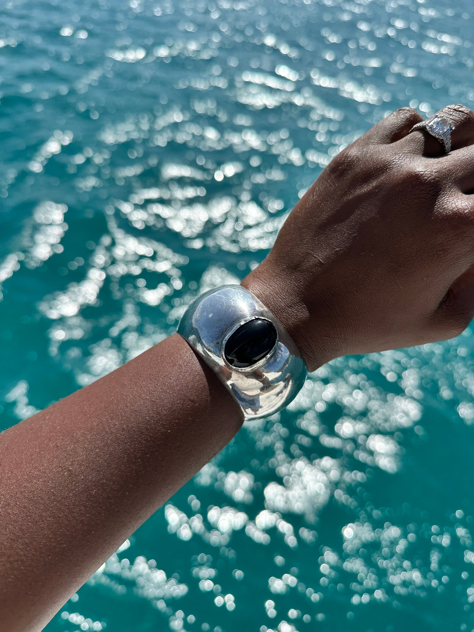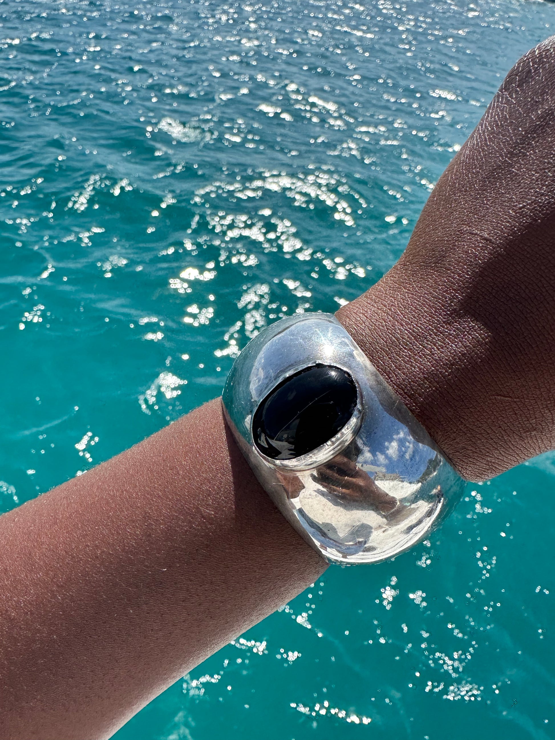 Chunky Vintage Onxy sterling silver cuff bracelet