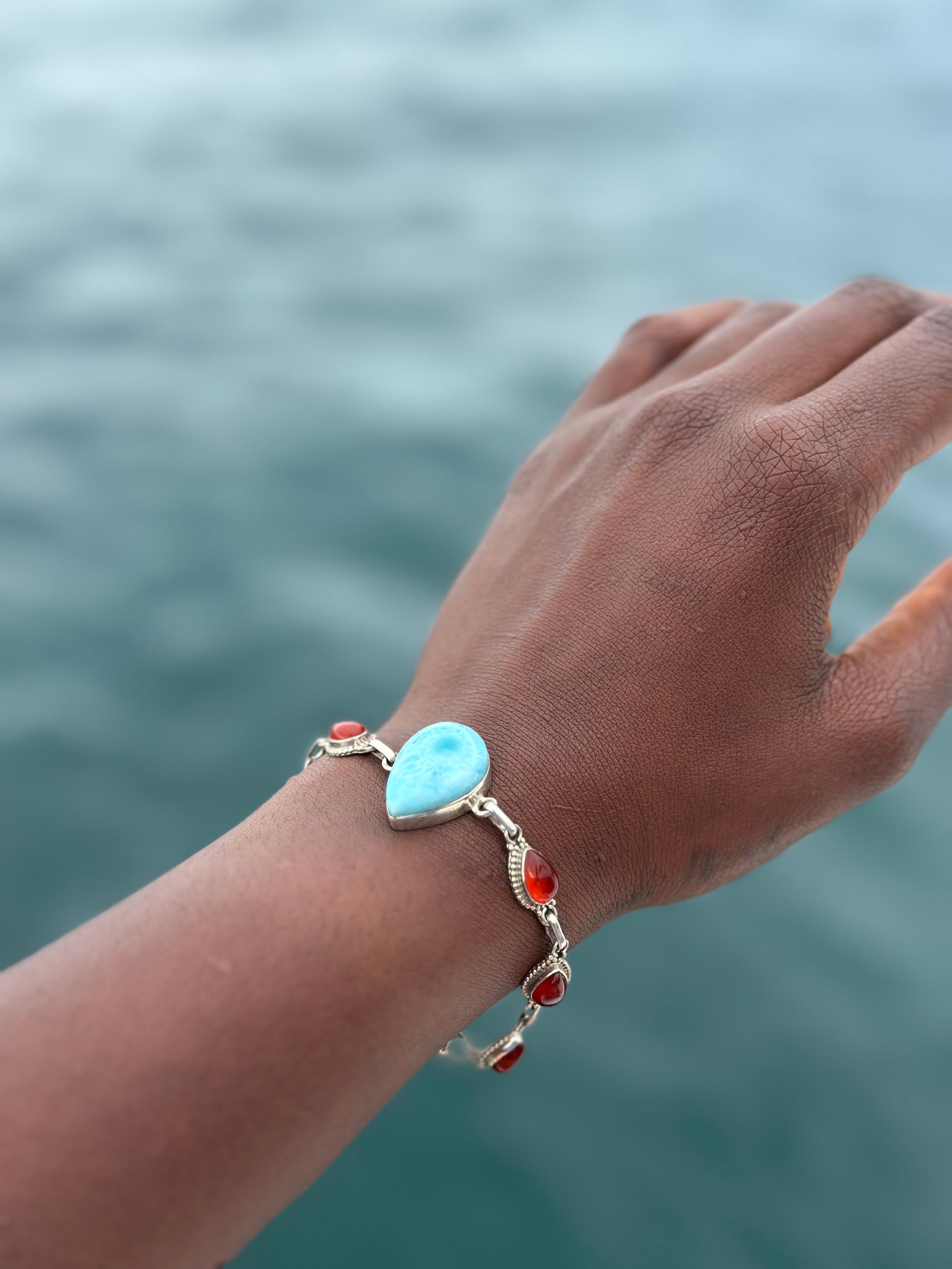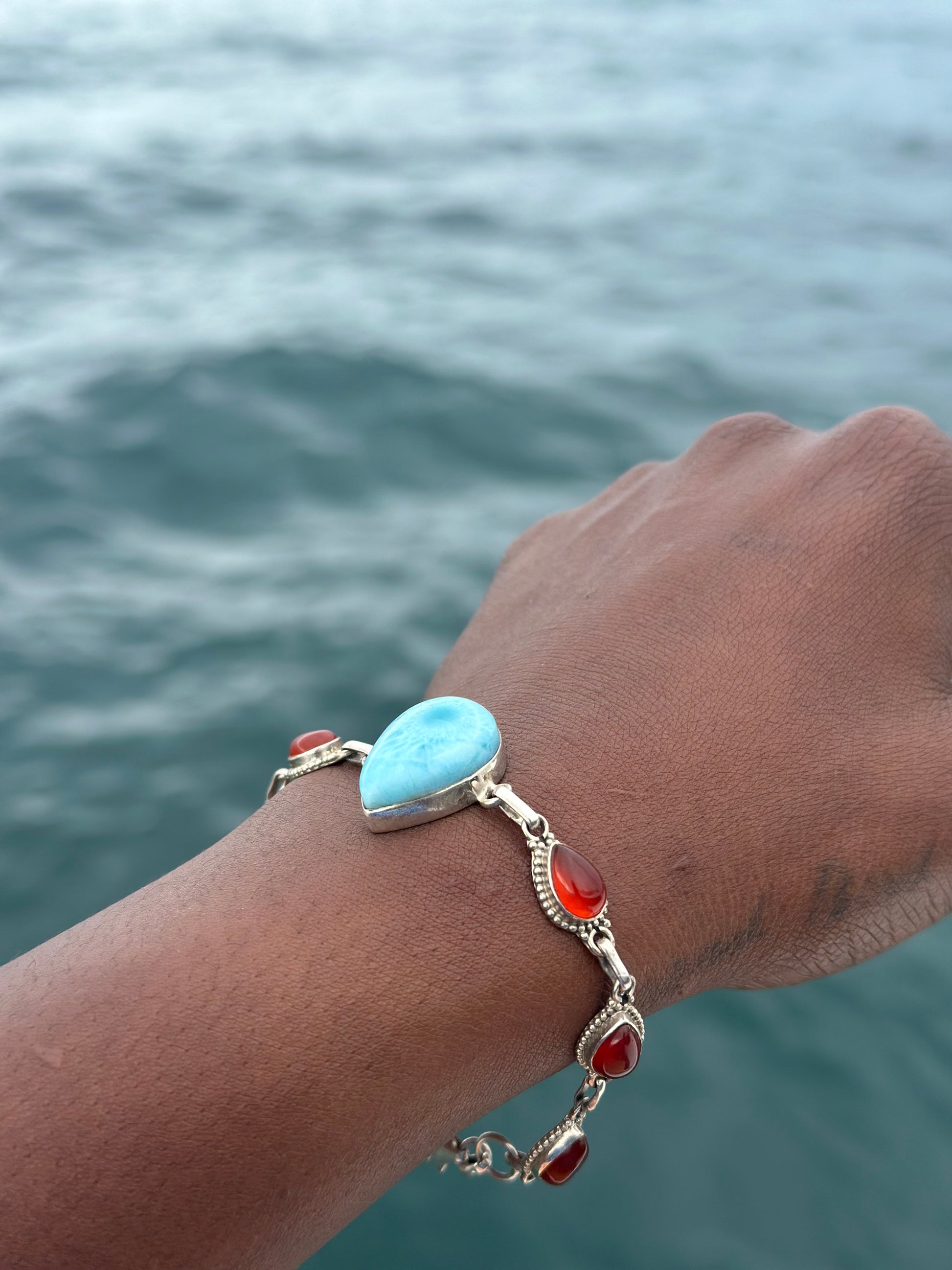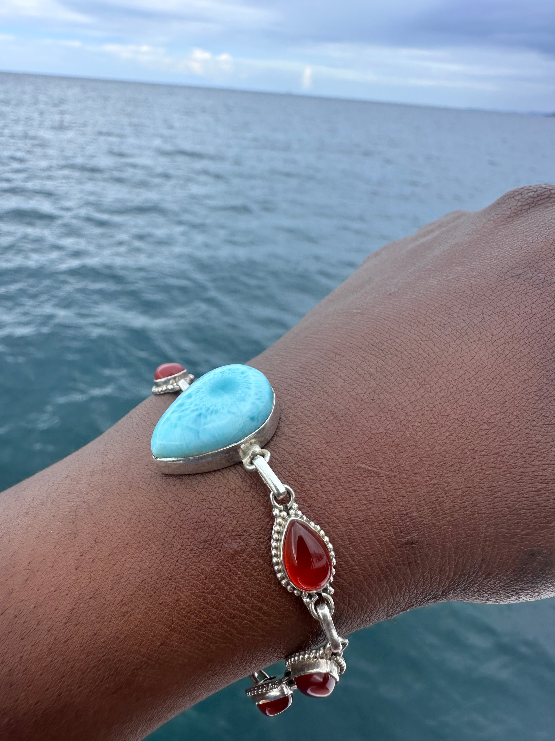 Delicate vintage Carnelian & Larimar Sterling silver bracelet