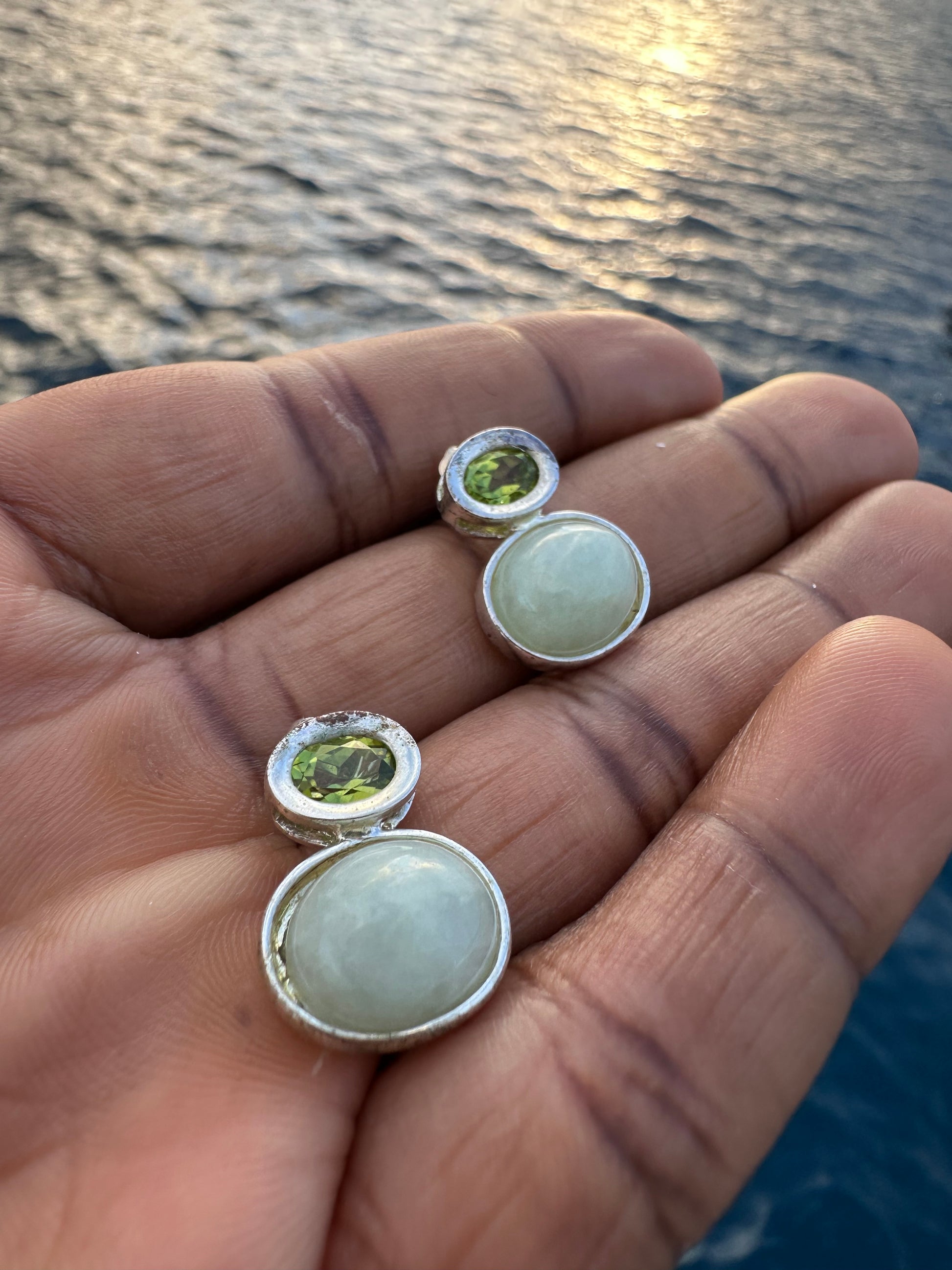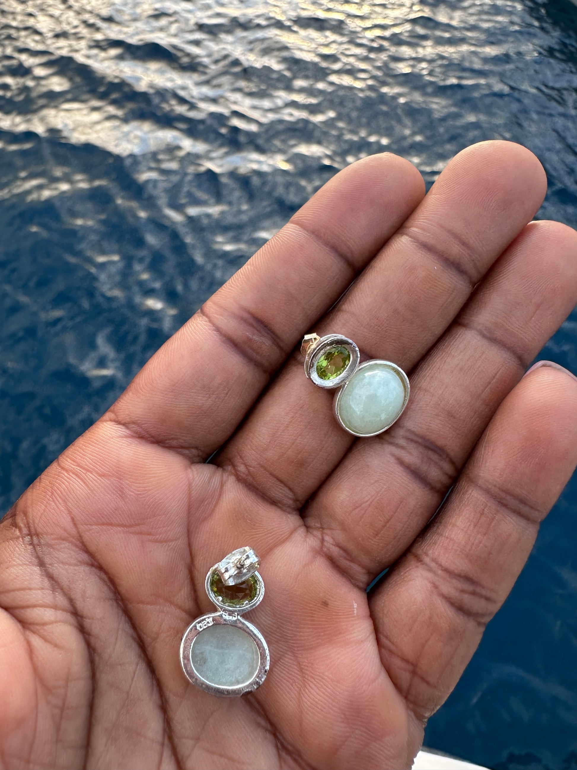 Pretty vintage sterling silver Peridot and Prehnite earrings.