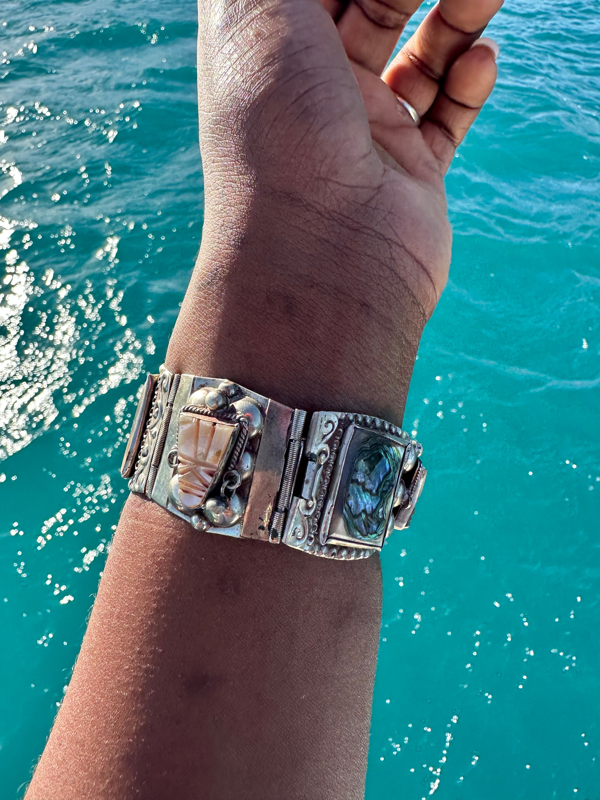 Stunning Vintage Abalone sterling silver masked bracelet.